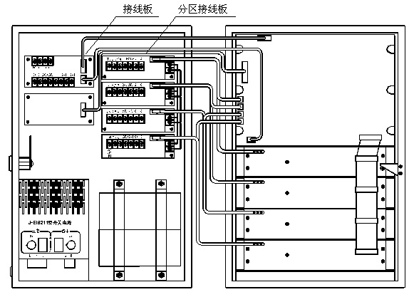 位于箱體上部右側(cè),自上而下,依次為1~4分區(qū)接線板,其中: