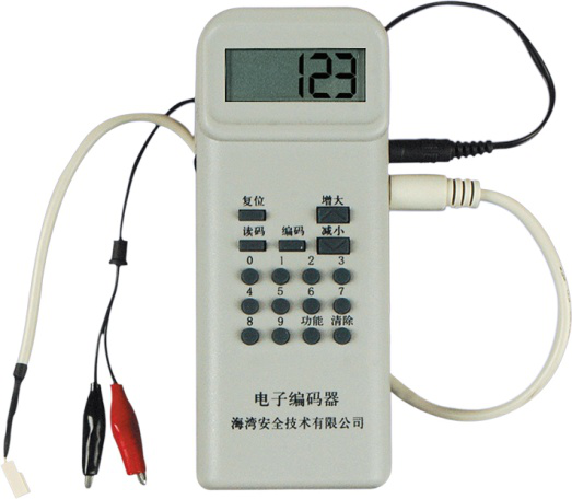 與探測器、模塊的總線端子相連,操作 ,開機(jī)后按下讀碼鍵,液晶屏上將顯示地址編碼。輸入探測器或模塊的地址編碼(1-242),按下“編碼”鍵進(jìn)行編碼。若編碼成功,屏幕顯示下一個(gè)地址碼,此時(shí),直接按下“編碼”鍵,可直接編入下一個(gè)地址碼。
