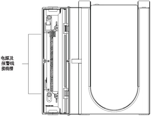 下面是它的電源與報警線接線槽示意圖