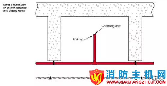 拐杖式采樣,用于有梁且梁高度較高時(規(guī)范是60cm)梁間就需要設(shè)置探測器。此時采樣管可以設(shè)置一個手杖樣子的管路,并開采樣孔解決。