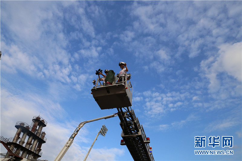 11月7日,媒體記者在體驗(yàn)云梯救援。新華網(wǎng) 周淑儀 攝