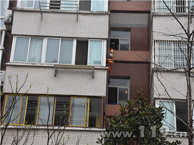消防官兵來(lái)到事發(fā)單元樓五樓,放下繩索,由一名消防員從三樓陽(yáng)臺(tái)攀爬到這戶的窗口,進(jìn)入屋內(nèi),由于房門反鎖,消防員只好在屋內(nèi)安撫小女孩。 20多分鐘后,小女孩的父親趕回家。