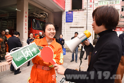 消防官兵與群眾進(jìn)行現(xiàn)場互動,拿出真假消防產(chǎn)品供群眾進(jìn)行辨別,參與人員手持紅、綠指示牌積極搶答,回答正確的群眾會得到一份消防部門提供的大禮包。
