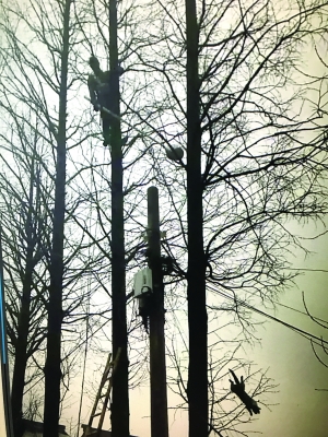 3月18日上午9點左右,這位老太太找來一把梯子,開始自己爬樹救貓。當(dāng)時附近有不少人,大家開始勸阻老太太,但是老人堅持往樹上爬。
