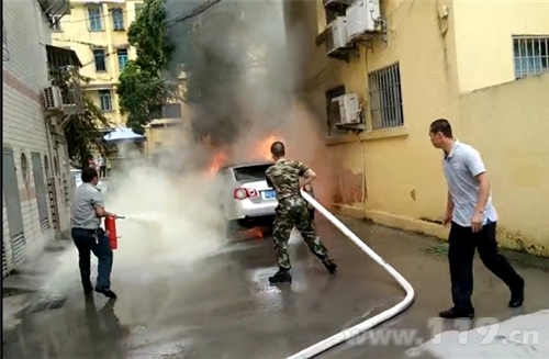 人群中,一名身著迷彩服的青年穿過(guò)人流,朝著事故發(fā)生地跑去,拿起水槍對(duì)起火車輛進(jìn)行撲救。當(dāng)時(shí),起火車輛的油箱已經(jīng)燒裂并出現(xiàn)了流淌火,流淌火在火情事故中十分危險(xiǎn),就像巖漿一樣,液體流到哪里就燒到哪里,隨時(shí)可能波及周邊住宅樓。在這種情況下,如不及時(shí)處置,火勢(shì)將會(huì)蔓延,后果不堪設(shè)想。微型消防站人員迅速拿來(lái)干粉滅火器,青年與微型消防站人員共同對(duì)流淌火進(jìn)行覆蓋。十五分鐘后,明火被完全撲滅。